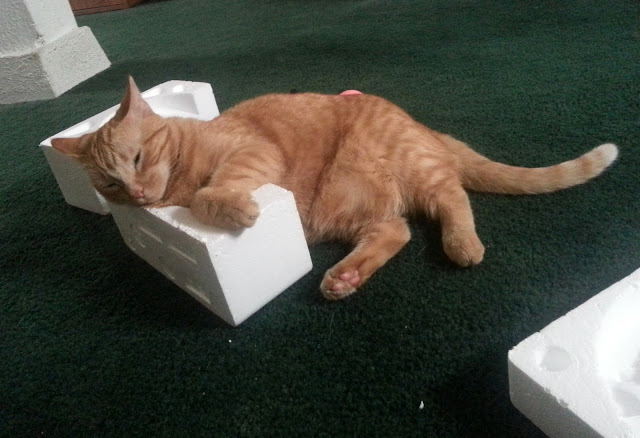 Jake keeps saying that the Styrofoam pieces are like little kitty couches.